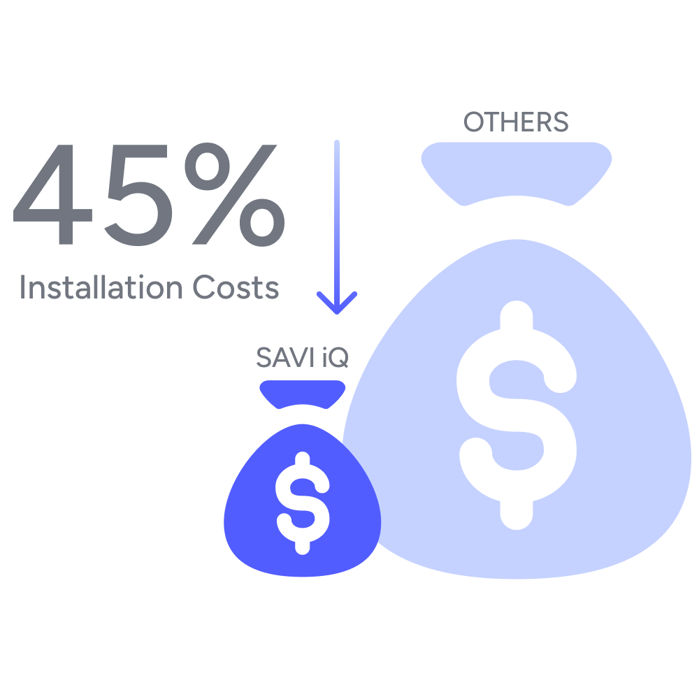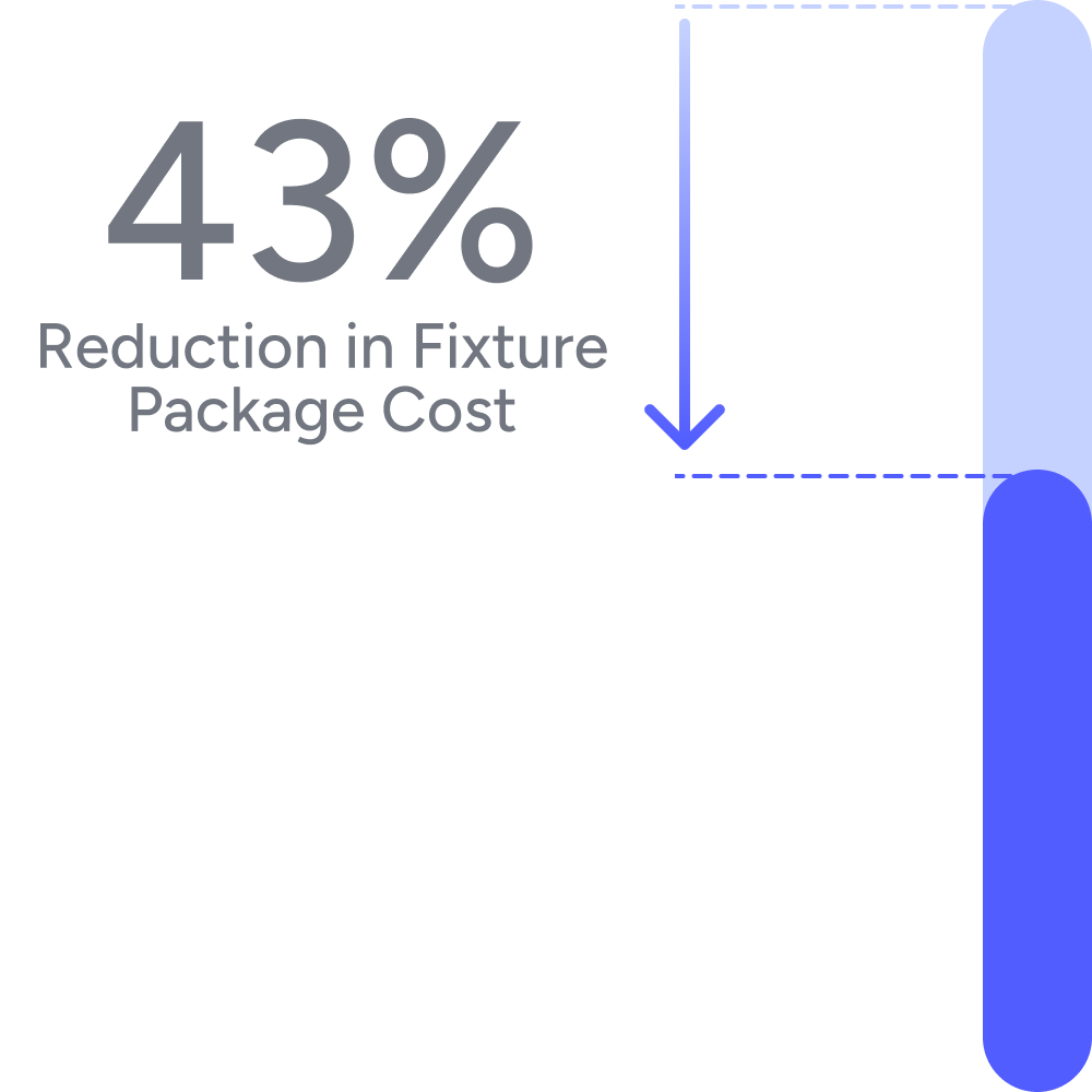 During the design phase, the team modelled a direct comparison between a conventional 277-volt high-voltage scheme and a low-voltage SAVI QoraLux alternative of identical scale. The difference was measurable at every stage. The fixture package showed a 43% reduction, while installation costs saved 45%.